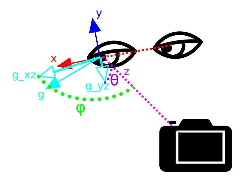 Estimated gaze direction for both eyes. When the subject looks directly towards the camera, the return values equal 0.