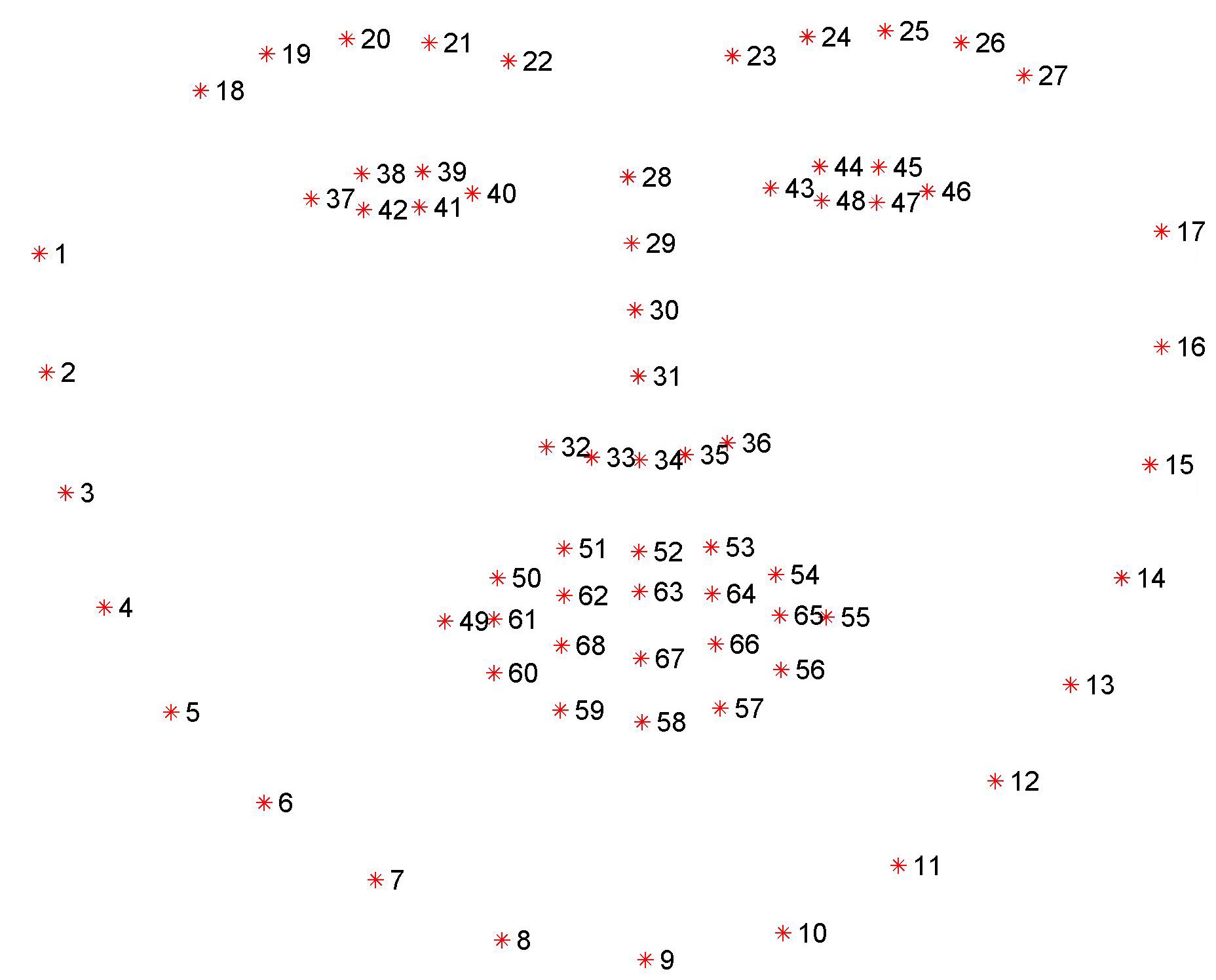 Estimated 68 landmark features
