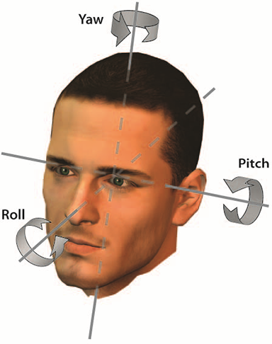 Estimation of the head pose. Yaw, pitch and roll angles are returned in degrees.